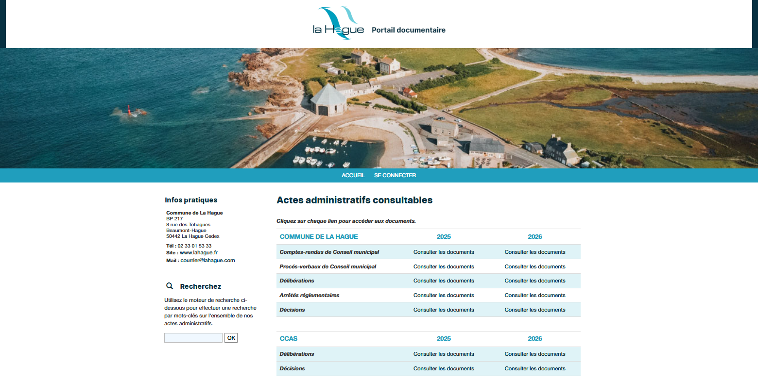 Soucieuse de renforcer l’accès à l’information publique, la commune de la Hague améliore l’information auprès des citoyens en mettant à disposition ses textes réglementaires et ses actes administratifs. Pour ce faire, vous pouvez consulter :